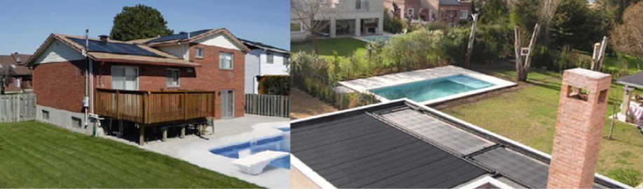 En piscinas residenciales, donde se utiliza la energía solar para prolongar el uso de la piscina a primavera y otoño, se requiere un colector solar que sea de un 50% a un 100% del área superficial de la piscina.